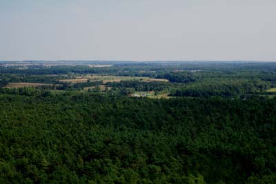 View from the Latarnia (lighthouse) in Stilo, standing 33 meters high. I love the forest-surrounded field -- "pole." "Poland" refers to the "people of the open fields."