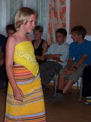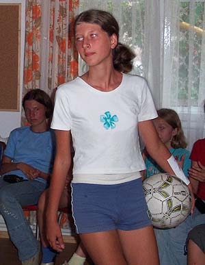 Emma during the "Sports" category of the Fashion Show. Hardly her personality, but much fun.