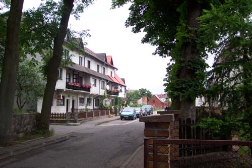 A typical side-street in L/eba. You are looking at two pensonjaty -- a pensonjat is literally a boarding house, and they are numerous in L/eba for summer beach-goers. This includes normal summer camps, language camps like ours, as well as vacationing Poles, Germans, and others.