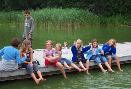 At the jezioro -- lake. Dominka has her back to us, Justyna, Emma, Daria, Kasia and Natalia. All save Emma were my students.