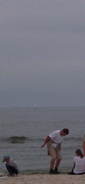 Tomek (The Botanist) approaches the wydma -- dunes. Tomek was one of my best teachers: on walks to the plaza (beach) or to town (miasto) he would point out pine trees, cones, animals...and name them. Then he'd describe an animal and act out its movements so I could understand his Polish, which was mostly beyond me, as was my English for him.